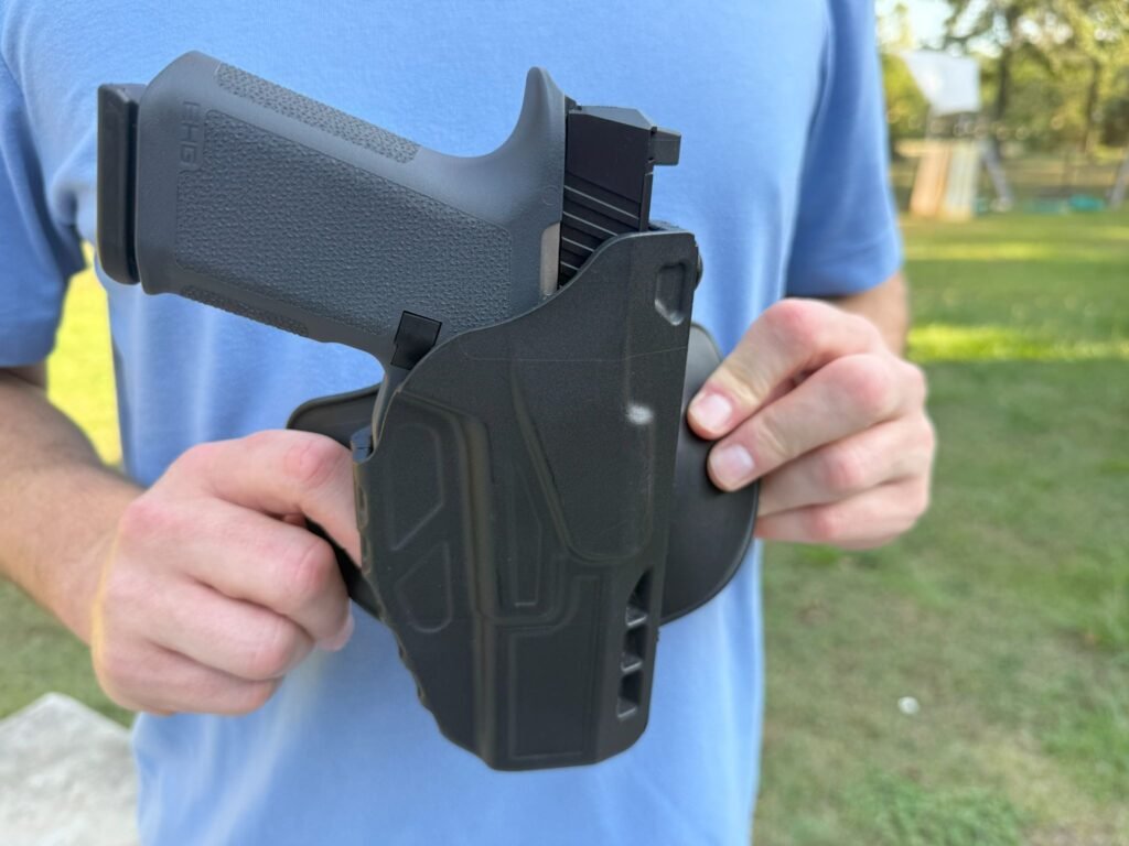 For outside-the-waistband, I use the Safariland ALS paddle holster. It is secure, repeatable, and great for range or farm carry. OWB options are forgiving for beginners, and I will cover concealed carry holsters in detail in the upcoming EDC article. Expect to pay $50 to $160 for a quality paddle or ALS-style holster.