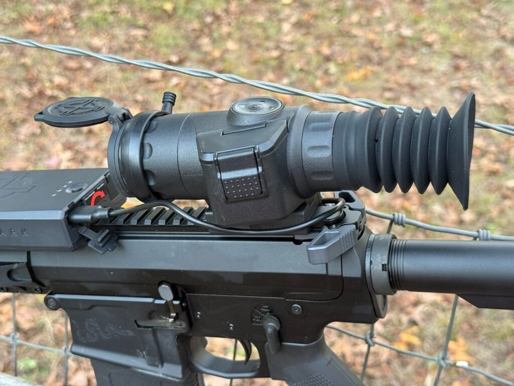 Day mode is clean and sharp enough that it doesn’t feel like you’re ‘making do’ with a night scope. Zeroing at 100 yards with Hornady Precision Hunter and American Whitetail loads was straightforward. The reticle remained crisp, and the display did not lag or smear during recoil.